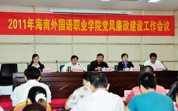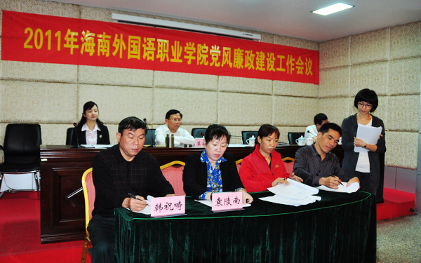 會(huì)議還舉行了2011年黨風(fēng)廉政建設(shè)目標(biāo)責(zé)任書簽字儀式。黨委書記韓祝疇、院長袁陵南代表學(xué)院與各系部、處室、圖書館黨政負(fù)責(zé)人簽署了海南外國語職業(yè)學(xué)院黨風(fēng)廉政建設(shè)責(zé)任書。