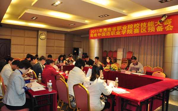 2011年海南省職業(yè)院校技能大賽高職組“單證”和“客房服務(wù)與管理形象”兩個(gè)項(xiàng)目的比賽4月底將在我院舉行,為確保比賽公平、公正、有序進(jìn)行,我院根據(jù)教育廳要求于3月25日上午在會(huì)議廳召開(kāi)了此次比賽的賽前預(yù)備會(huì)。學(xué)院李渝鳳副院長(zhǎng)、教務(wù)處、商務(wù)英語(yǔ)系和旅游外系相關(guān)教師以及來(lái)自全省8所高職院校的20名代表出席會(huì)議,會(huì)議由教務(wù)處劉明鵬處長(zhǎng)主持。