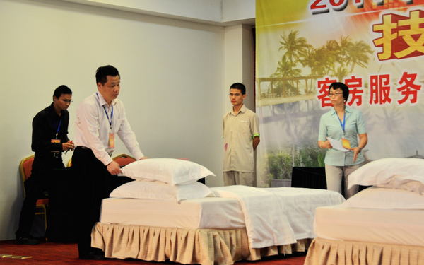 據(jù)悉,此次在我院進(jìn)行的《國際貿(mào)易單證技能》和《飯店客房服務(wù)與管理形象技能》項目競賽分別考核學(xué)生國際貿(mào)易專業(yè)知識和旅游酒店專業(yè)知識,其中《國際貿(mào)易單證技能》項目主要從單證基礎(chǔ)知識和單證實務(wù)操作兩大部分考核參賽選手的外貿(mào)單證繕制能力,《飯店客房服務(wù)與管理形象技能》項目則通過現(xiàn)場操作(儀容儀表和中式鋪床操作)、知識問答和才藝表演三個環(huán)節(jié)考核各高職院校旅游酒店專業(yè)學(xué)生的業(yè)務(wù)知識、操作技能和服務(wù)禮儀。