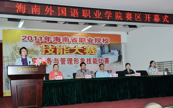 4月29日上午,2011年海南省職業(yè)院校技能大賽高職組《國際貿(mào)易單證技能》和《飯店客房服務(wù)與管理形象技能》項目競賽在我院隆重開賽,來自全省各地9所高職院校的代表隊,69名選手對34個獎項展開競爭角逐。省教育廳高教處處長張超、我院院長袁陵南、副院長陳禮民、副院長李渝鳳及文昌市旅游發(fā)展委員會主任薛向文出席開幕式并在主席臺就坐,各高職院校領(lǐng)隊老師及參賽選手參加了開幕式。