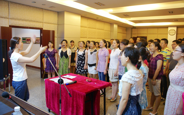 為了不影響工作,此次合唱排練多選在每天的晚上。合唱隊(duì)員們?cè)诜泵Φ墓ぷ髦?,放棄休息時(shí)間,堅(jiān)持排練;學(xué)院領(lǐng)導(dǎo)以身作則,積極帶頭參加,充分發(fā)揮了表率作用。建立部門(mén)負(fù)責(zé)制,各部門(mén)協(xié)力合作,保障場(chǎng)地確定、考勤記錄、飲用水提供等后勤工作的落實(shí)。堅(jiān)持人性化服務(wù),在緊張的合唱訓(xùn)練期間,不時(shí)向合唱隊(duì)員送來(lái)水果、糖水,調(diào)整隊(duì)員的歌唱狀態(tài)。
