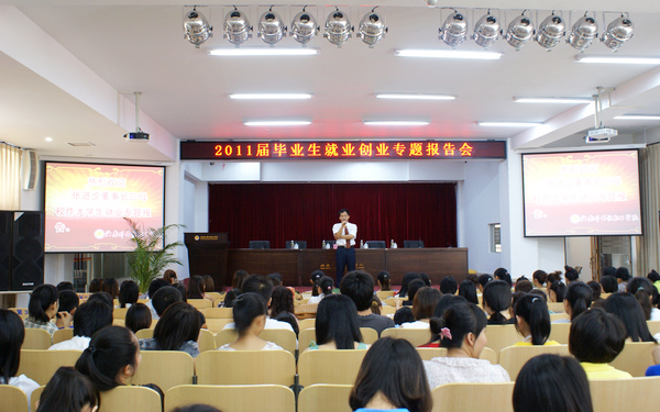 為進(jìn)一步加強(qiáng)對畢業(yè)生的就業(yè)指導(dǎo),引導(dǎo)樹立正確的就業(yè)觀念,6月30日下午,我院特別邀請海南恒迅房地產(chǎn)開發(fā)有限公司董事長、我院校友張進(jìn)步先生在圖書館多功能報(bào)告廳為2011屆畢業(yè)生作就業(yè)創(chuàng)業(yè)專題報(bào)告。院長袁陵南、黨委副書記兼紀(jì)委書記莫運(yùn)深、有關(guān)部門負(fù)責(zé)人及2011屆畢業(yè)生聆聽了本次報(bào)告會(huì)。