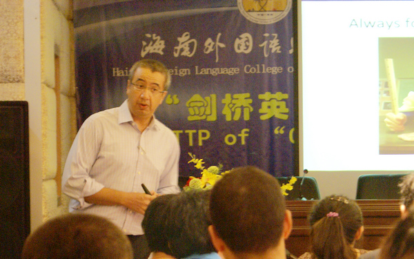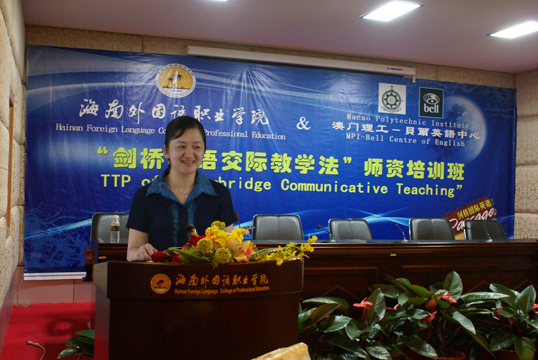 李渝鳳副院長在開班儀式上致歡迎詞,她首先代表學(xué)院向本次“劍橋英語交際教學(xué)法”師資培訓(xùn)班的外國專家表示歡迎和感謝,并介紹了培訓(xùn)班得以成功舉辦的緣由,強(qiáng)調(diào)了舉辦此次師資培訓(xùn)班的重要意義,希望參加培訓(xùn)班的全體教師能借此學(xué)習(xí)機(jī)會,努力加強(qiáng)學(xué)習(xí),努力提高自身的教學(xué)技能。隨后,“劍橋英語交際教學(xué)法”師資培訓(xùn)班的外國專家Harry以及我院培訓(xùn)班學(xué)員代表分別在開班儀式上發(fā)表講話,對本次“交際教學(xué)法”師資培訓(xùn)班寄予了期望。