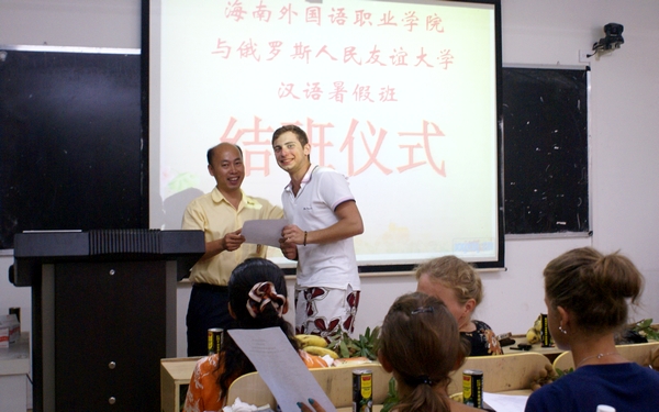 直至8月8日,俄羅斯人民友誼大學(xué)的13名師生將結(jié)束他們在中國為期5周的漢語學(xué)習(xí)。在儀式上,每位漢語班的學(xué)員都用漢語表達(dá)了自身的感受,對我院領(lǐng)導(dǎo)的關(guān)心和老師們的辛勤付出表示由衷的感謝,同時紛紛表示漢語暑假班給他們帶來了無窮的快樂和美好的回憶,學(xué)習(xí)期間不僅感受到了中國人的熱情,同時也學(xué)到了許多漢語知識和中國文化,親身體驗了海南的風(fēng)土人情。