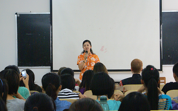 “這20多天里,我的英語口語水平得到極大提高,感謝此次English Workshop的美國老師,歡迎你們經(jīng)常來中國做客”、“英語夏令營讓我的暑期生活變得多姿多彩,這將是我一生難忘的快樂體驗(yàn)”……8月5日上午,我院多媒體教室(5)里氣氛熱烈、掌聲如潮,我院聯(lián)合美國國際教育交流協(xié)會共同舉辦的2011年暑期英語夏令營活動在這里正式落下帷幕,作為此次活動的主體,不少來自校內(nèi)外的夏令營學(xué)員紛紛踴躍發(fā)表了各自的參與感受。