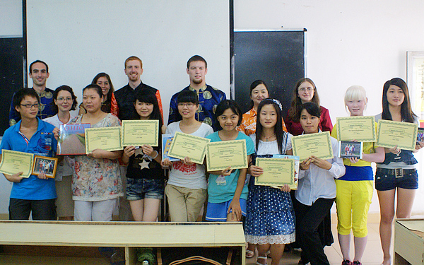 7月11日至8月5日,來自美國的5名外教來到我院暑期夏令營活動現(xiàn)場,為2011年英語夏令營的50多名學(xué)員進(jìn)行了為期四周的英語教學(xué)。在8月5日的畢營儀式上,我院李渝鳳副院長、對外合作交流處相關(guān)人員以及全部授課教師以輕松、活潑的方式共同度過了夏令營活動最后相聚的時間,展示學(xué)習(xí)收獲、表達(dá)彼此友誼的同時,也為學(xué)員指引了今后英語學(xué)習(xí)努力的方向。