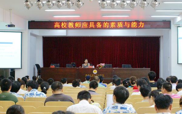 當(dāng)天雖是三十多度的高溫,但前來(lái)聽(tīng)講的老師們?nèi)匀唤j(luò)繹不絕,學(xué)院袁陵南院長(zhǎng)和李渝鳳副院長(zhǎng)、各部門負(fù)責(zé)人及景志華教授也在百忙之中抽空到場(chǎng),加入聽(tīng)講行列。講座由教務(wù)處劉明鵬處長(zhǎng)主持。講座現(xiàn)場(chǎng),劉然教授從“高等教育的理念”和“高校教授應(yīng)具備的素質(zhì)和能力”兩大方面講解了高等教育的目標(biāo)、定位、要素等內(nèi)容,并結(jié)合自身經(jīng)歷,分享了一位合格的高校教師應(yīng)該具備的七點(diǎn)素質(zhì)和能力。