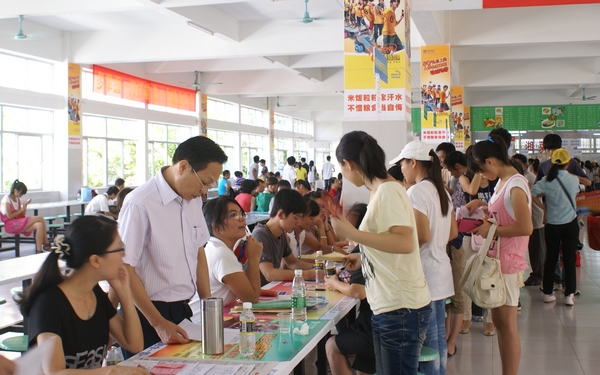 為了方便新生入學(xué)報(bào)到,學(xué)院針對(duì)新生接站、志愿者服務(wù)等方面都預(yù)先做好了充分準(zhǔn)備,分別在??诟劭瓦\(yùn)碼頭、??诨疖囌?、??诨疖嚃|站、美蘭機(jī)場(chǎng)、??谄囄髡?、汽車南站、汽車東站設(shè)置了新生咨詢點(diǎn),以便指導(dǎo)新生乘車,同時(shí)在文昌火車站、文昌汽車站設(shè)置了新生接待站,并安排專車接送新生到校。新生到校后,校門口早已站滿了等候接待新生的學(xué)生干部和志愿者們,學(xué)院教學(xué)樓、寢室、校道、食堂也都隨處可見他們的身影,他們面帶微笑,不辭辛勞地幫助新同學(xué)提著大大小小的行李,親切耐心地回答新生和家長(zhǎng)們的詢問,一對(duì)一幫助新生完成注冊(cè)繳費(fèi),熱情地為學(xué)生和家長(zhǎng)服務(wù)。學(xué)院保衛(wèi)部門也加強(qiáng)了學(xué)院門口的交通秩序和校園的巡邏工作,確保迎新工作安全有序的進(jìn)行,后勤保障、宿舍管理等各環(huán)節(jié)工作也運(yùn)轉(zhuǎn)有序,充分展示了我院的管理水平、服務(wù)意識(shí)和協(xié)調(diào)能力,得到了新生和家長(zhǎng)的一致好評(píng)。