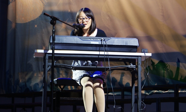 2011級(jí)新生陳緣同學(xué)電子琴?gòu)棾?/span>when you are hone》《trouble is a friend》
