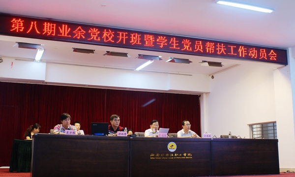 日前,我院第八期業(yè)余黨校開班暨學生黨員幫扶工作動員會在學院圖書館多功能報告廳舉行。學院黨委副書記兼紀委書記莫運深,黨委辦公室、組織統(tǒng)戰(zhàn)部、學生處、團委等部門相關負責人,以及各基層黨總支(支部)全體委員、全體入黨積極分子、在校學生黨員參加了開班動員會。會議由黨委辦公室吳東陽主任主持。