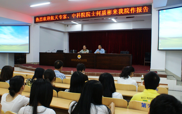 10月19日下午,航天之父、中科院院士何質(zhì)彬先生一行3人做客我院,在圖書(shū)館多功能報(bào)告廳為廣大學(xué)子“獻(xiàn)上”了一場(chǎng)精彩的航天科技知識(shí)專(zhuān)題講座,傳授航天科技知識(shí)的同時(shí),也為我院服務(wù)文昌航天發(fā)射中心建設(shè)的工作送來(lái)信心、指明前路。