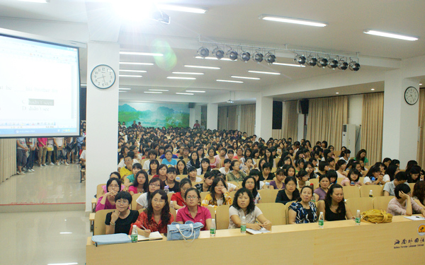 劉然教授根據(jù)自己多年從事英語教學的實際經(jīng)驗,詳盡闡述了關于四六級、AB級考試中所會遇到問題及應試的答題策略和技巧。講座中,劉然教授運用大量的考題實例,以獨到的見解,生動形象地針對聽力、寫作、快速閱讀等題型為同學們進行答題技巧點撥,為同學們能在較短的時間內(nèi)迅速提高知識運用能力和答題準確率提供了切實有效的幫助。講座舉辦的兩個晚上,圖書館多功能報告廳座無虛席,現(xiàn)場學習氣氛異常濃厚,同學們認真聆聽并記錄,時而低頭冥思,時而高聲跟讀,整場講座聽下來,同學們紛紛表示受益匪淺。