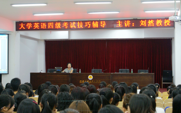 為了使我院學生更深入理解英語四六級、英語能力AB級考試的考試特點,掌握答題技巧,提高考試通過率,10月19日-20日晚,我院在圖書館多功能報告廳舉辦英語四六級、AB級考試技能輔導講座,由應用英語系主任劉然教授(國家二級教授)主講,為即將參加12月大學英語四六級、AB級考試的學生進行考試技能輔導。