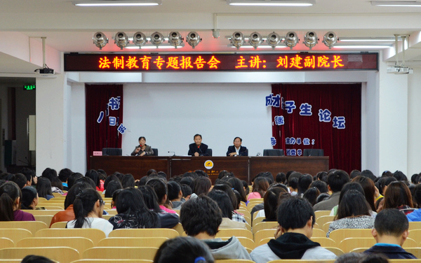 此次法制教育專題報告會是我院踐行依法治校、創(chuàng)建平安校園的一大舉措,也是“學(xué)生思想政治教育質(zhì)量提升工程”建設(shè)的一項(xiàng)重要工作。報告會上,劉建教授從青少年問題概要入題,詳細(xì)、全面介紹了全國和我省青少年犯罪的整體情況,深入、細(xì)致地分析了青少年犯罪的特點(diǎn)、性質(zhì)、原因及對策,還就新近發(fā)生的校園安全事件與在場師生進(jìn)行探討,并結(jié)合海南國際旅游島建設(shè)、文昌航天發(fā)射基地建設(shè)的社會背景和我院的實(shí)際情況,對我院校園安全穩(wěn)定綜合治理工作和師生預(yù)防犯罪提出了建議。