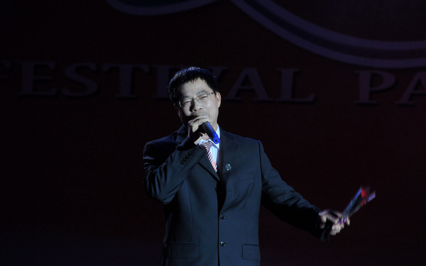 圖片3:我院袁陵南院長與學生處梁松處長共同帶來一曲《祝愿歌》