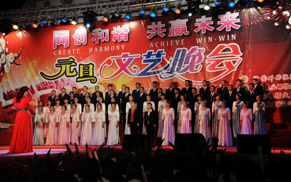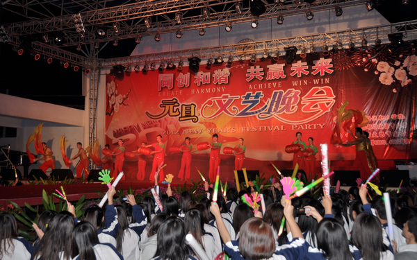 為慶元旦迎新春,豐富校園文化生活,加強與外界溝通交流,12月29日晚,我院攜手中國農業(yè)銀行文昌市支行、中國銀行文昌市支行等單位在田徑運動場隆重舉行“同創(chuàng)和諧、共贏未來”2012元旦文藝晚會。學院領導、合辦單位有關領導以及全體師生員工歡聚一堂,共同享受了一場精彩紛呈的視覺盛宴。