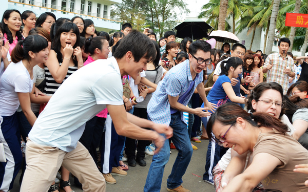 3月8日下午,我院一號(hào)教學(xué)樓前人聲鼎沸、熱鬧非凡,我院慶祝“三八國(guó)際婦女節(jié)”女子拔河比賽在這里舉行,來(lái)自全院各部門(mén)、各系部的16支隊(duì)伍,兩百多名女師生員工參加了比賽。