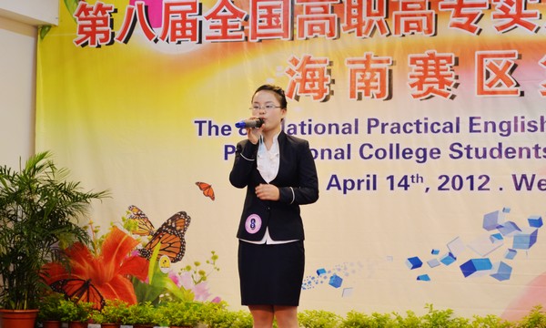 據(jù)悉,本屆大賽是由海南省教育廳、高等教育出版社主辦,海南省高職高專英語(yǔ)類專業(yè)教學(xué)指導(dǎo)委員會(huì)與我院聯(lián)合承辦,旨在進(jìn)一步深化高職高專院校英語(yǔ)課程教學(xué)改革,不斷激發(fā)高職高專學(xué)生學(xué)習(xí)英語(yǔ)的積極性,努力提高高職高專學(xué)生英語(yǔ)口語(yǔ)表達(dá)能力的一項(xiàng)重要賽事,共吸引了來(lái)自全省14所高職院校的32名選手參加比賽。大賽分為英語(yǔ)專業(yè)和非英語(yǔ)專業(yè)兩個(gè)組別,內(nèi)容由脫稿發(fā)言、現(xiàn)場(chǎng)描述、情景交流三個(gè)環(huán)節(jié)組成,充分展現(xiàn)我省高職高專學(xué)生的才華與風(fēng)采。
