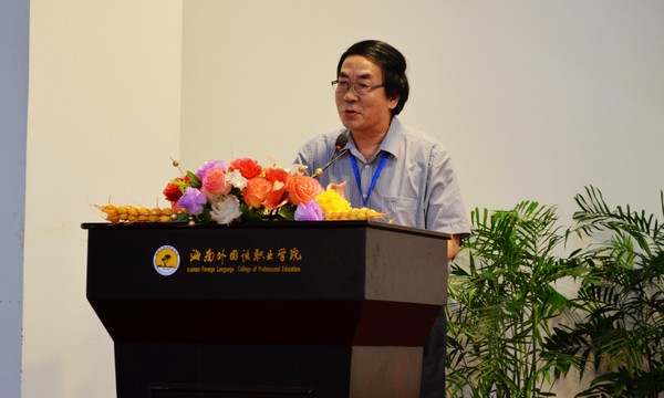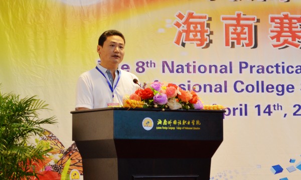 海南高職高專英語(yǔ)類專業(yè)教學(xué)指導(dǎo)委員會(huì)主任張伯敏宣布比賽結(jié)果