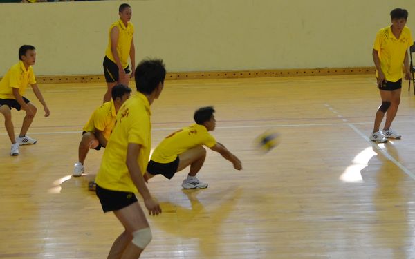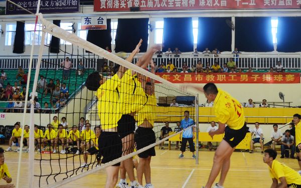 在7月14日我院與文昌中學(xué)的決賽中,學(xué)院黨委書記袁陵南,院長(zhǎng)李渝鳳,黨委副書記、紀(jì)委書記莫運(yùn)深等學(xué)院領(lǐng)導(dǎo)親臨現(xiàn)場(chǎng)觀看比賽,與隊(duì)員們同歡樂。此外,不少系部和處室負(fù)責(zé)人也到場(chǎng)為球隊(duì)吶喊助威,充分帶動(dòng)了參賽隊(duì)員們的情緒。雖然我院最終惜敗文昌中學(xué)代表隊(duì),但隊(duì)員們?cè)诒荣愔卸急憩F(xiàn)出了頑強(qiáng)的斗志,多個(gè)高難度的發(fā)球、扣殺和攔網(wǎng)都處理的十分出色,贏得現(xiàn)場(chǎng)陣陣掌聲。
