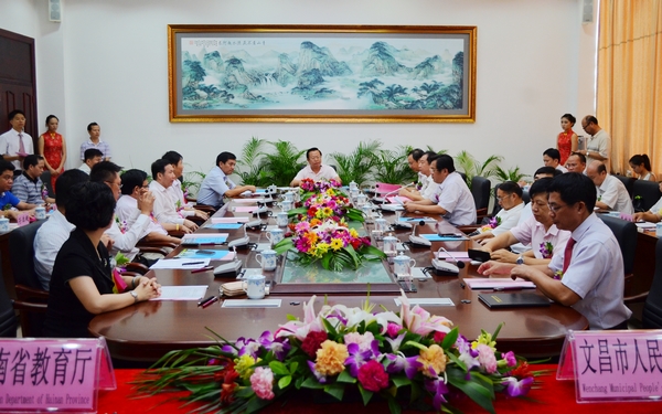 9月24日上午,海南省教育廳與文昌市人民政府共建海南外國語職業(yè)學(xué)院簽約儀式在我院綜合樓七樓第一會議室隆重舉行。這標(biāo)志著我院成為繼瓊州學(xué)院之后的海南省第二所省市共建高校,是學(xué)院發(fā)展建設(shè)中一項具有里程碑意義的重大事件。