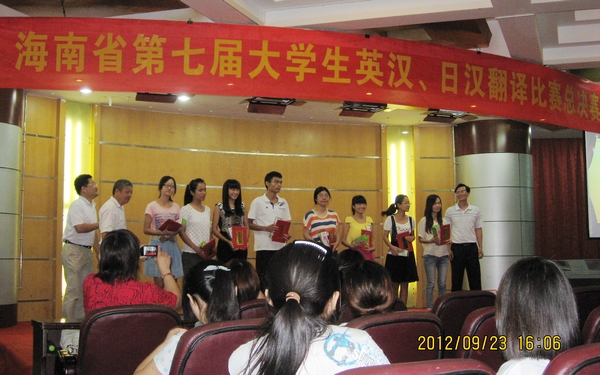 由海南省翻譯協(xié)會(huì)主辦,海南大學(xué)旅游學(xué)院承辦的的海南省第七屆大學(xué)生英漢、日漢翻譯比賽總決賽于9月23日圓滿落下帷幕。我院參賽的徐艷平、談光月等七位同學(xué)分別在比賽中榮獲一、二、三等獎(jiǎng),為學(xué)院爭(zhēng)得榮譽(yù),同時(shí)也彰顯了我院在英漢、日漢翻譯教學(xué)與實(shí)踐方面的實(shí)力。