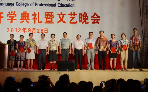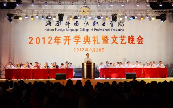 金秋九月,天高氣爽,學院又迎來了新一批滿懷夢想的莘莘學子。9月28日晚,我院2012級新生開學典禮暨文藝晚會在學院運動場隆重舉行。學院黨委書記陳禮民,院長李渝鳳,黨委副書記、紀委書記莫運深,全體中層領導干部及外籍教師出席典禮并在主席臺就坐。典禮由學生處梁松處長主持,全體師生員工共聚盛會。
