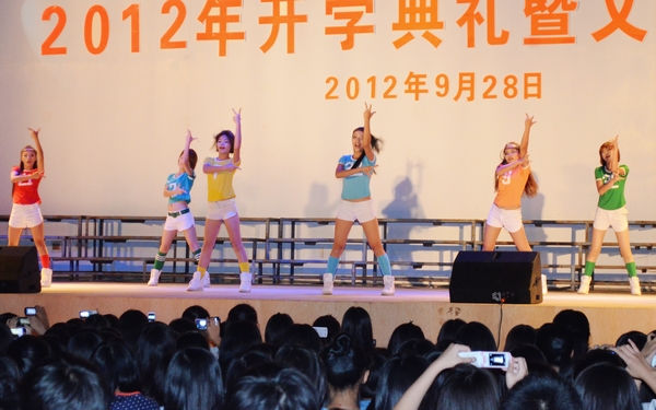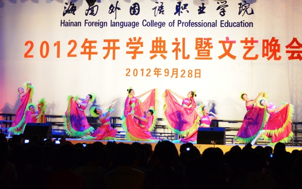 開學典禮后,一場青春飛揚、異彩紛呈的迎新文藝晚會在這里進行。我院舞蹈團獻演的《和諧大家庭》、《豐收時節(jié)》、《花溪、花溪》、《夏威夷之夜》等舞蹈,悠揚動聽的獨唱《阿爸》、《椰鄉(xiāng)綻放文明花》,同學們與外教共同演繹的歌曲《快樂你懂的》,卡帶街舞社帶來的舞蹈串燒等,將現(xiàn)場氣氛推到最高潮。旋轉的舞蹈,悠揚的歌聲,綻放的煙花使當晚的夜空散發(fā)著青春與歡悅的濃濃氣氛。祝福2012級新生在美好的大學時光里,收獲知識,收獲情誼,收獲成長和快樂。