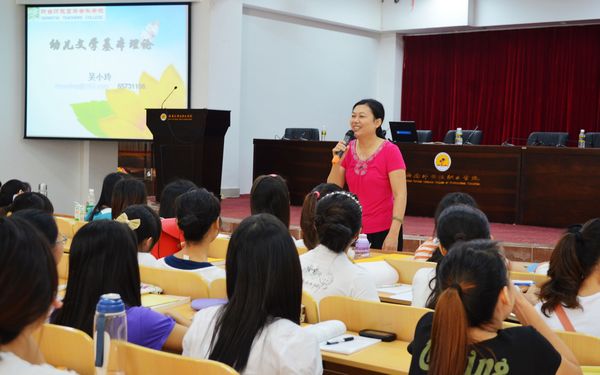 我院教務(wù)處劉明鵬處長(zhǎng)在隨后發(fā)言中對(duì)海南省幼兒師資培訓(xùn)研究中心在我院舉辦培訓(xùn)班表示感謝和歡迎,認(rèn)為此次培訓(xùn)班課程設(shè)置全面,授課教師資深優(yōu)秀,希望學(xué)員們要珍惜和抓住難得的學(xué)習(xí)機(jī)會(huì),遵守紀(jì)律,用心學(xué)習(xí),加強(qiáng)交流,爭(zhēng)取圓滿完成各項(xiàng)培訓(xùn)任務(wù),學(xué)以致用。應(yīng)用英語(yǔ)系張清萍老師最后就培訓(xùn)班的考勤制度、課程設(shè)置、培訓(xùn)要求等方面作了簡(jiǎn)要的介紹和安排。