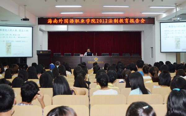 為加強(qiáng)學(xué)生思想道德建設(shè),增強(qiáng)學(xué)生的法制觀念,提高學(xué)生遵紀(jì)守法的自覺性,10月15日晚,我院邀請(qǐng)海南師范大學(xué)政法學(xué)院副教授、法學(xué)博士張紅昌為2012級(jí)新生作了一場(chǎng)題為“遵紀(jì)守法,與法同行”的法制專題報(bào)告。學(xué)院黨委副書記、紀(jì)委書記莫運(yùn)深,學(xué)生處等有關(guān)部門人員,全體輔導(dǎo)員及2012級(jí)新生參加了報(bào)告會(huì)。
