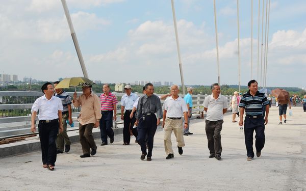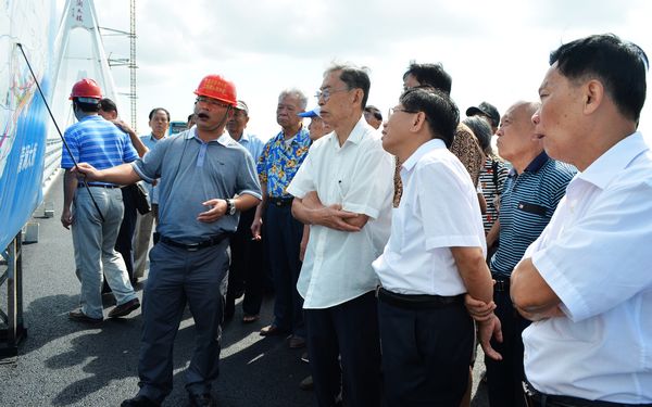 自今年9月清瀾跨海大橋合攏以來(lái),實(shí)地參觀大橋,親眼目睹大橋的威武雄姿,成了很多老同志們的期盼。為實(shí)現(xiàn)大家的心愿,我們的汽車駛向了活動(dòng)的第二站——參觀清瀾跨海大橋。大橋似長(zhǎng)龍臥波,橫跨于海天之上,縱覽大橋雄姿,令人心潮起伏,思緒萬(wàn)千。迎著和煦的陽(yáng)光,老同志們很快登上了慕名已久的清瀾跨海大橋,聽(tīng)著大橋建設(shè)指揮人員的講解,俯瞰熱鬧的清瀾環(huán)球碼頭,仰望高聳入云的高架橋墩,感受著橋上熱火朝天的施工場(chǎng)景,老同志們不禁胸懷舒暢,感慨萬(wàn)千,喜悅的心情溢于言表。