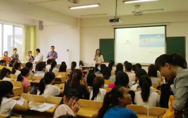 宣講會上,海南海航航空銷售有限公司相關(guān)部門經(jīng)理簡要介紹了海航銷售公司的企業(yè)文化及發(fā)展歷程,并著重從職業(yè)特色、工作特點(diǎn)、福利待遇、發(fā)展前景、團(tuán)隊建設(shè)等方面向同學(xué)們作了詳細(xì)介紹。通過宣講,同學(xué)們對其招聘的工作崗位有了更加直觀的認(rèn)識。其后,海航銷售公司人員還從自己入行來的親身經(jīng)歷出發(fā),重點(diǎn)談了從業(yè)以來的一些切身體會。我院畢業(yè)生熱情高漲、現(xiàn)場氣氛熱烈,同學(xué)們踴躍提問,該公司人員也耐心地就學(xué)生提出的有關(guān)福利、待遇、培訓(xùn)等問題進(jìn)行了一一解答。