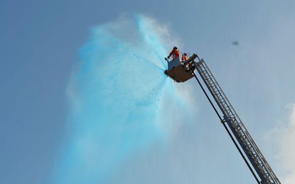 云梯消防車高空噴水撲火表演