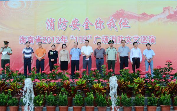 為全面宣傳普及消防法律法規(guī)和安全常識,進一步提升全民消防安全意識及逃生自救技能,為黨的十八大勝利召開創(chuàng)造良好的消防安全環(huán)境,11月7日,以“人人參與消防,共創(chuàng)平安和諧”為主題的文昌市“119”消防宣傳月活動啟動儀式暨海南省公安消防總隊巡回文藝演出活動在我院隆重舉行。文昌市政府、市委宣傳部、公安局、安監(jiān)局、教育局、文體局、民政局、旅游委、團市委等黨政和部門領導出席儀式;文昌市派出所代表、文昌市公安消防支隊官兵、志愿消防隊,以及文昌多所學校學生近5000人參與了此次活動。