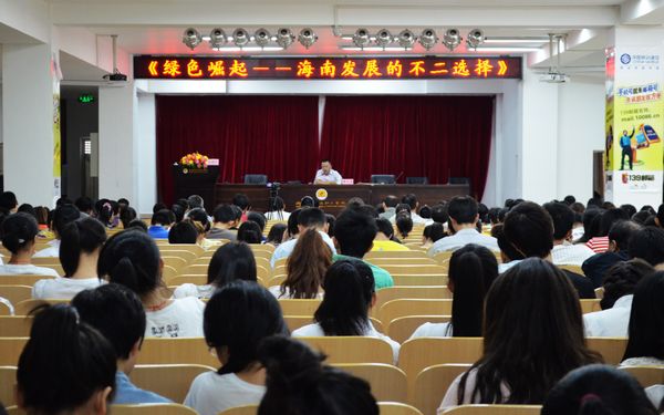 本次報告會的主題為“綠色崛起——海南發(fā)展的不二選擇”。報告會上,黃憶軍副教授從改革開放前、到改革開放后,從海南建省辦經(jīng)濟特區(qū)、到海南國際旅游島正式上升為國家戰(zhàn)略等方面梳理、回顧了海南幾十年的發(fā)展歷程,他認為“作為海南人民的一員,我們有義務(wù)、有責任去關(guān)注它的昨天和今天,也更有希望去展望它的明天”。報告中,黃憶軍副教授重點談到“綠色崛起”的問題,他指出,“綠色崛起”是海南省第六次黨代會報告中最大的亮點,生態(tài)建設(shè)是海南的特色,也是海南的優(yōu)勢,他通過結(jié)合國內(nèi)形勢背景,立足海南省情實際,從與國家戰(zhàn)略的關(guān)系、海南的戰(zhàn)略需求等方面,多視角、全方位分析詮釋了海南“綠色崛起”的戰(zhàn)略意義與內(nèi)涵。