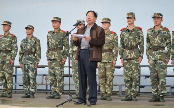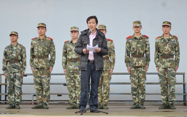 學(xué)院黨委副書記、紀(jì)委書記莫運(yùn)深作軍訓(xùn)動(dòng)員講話