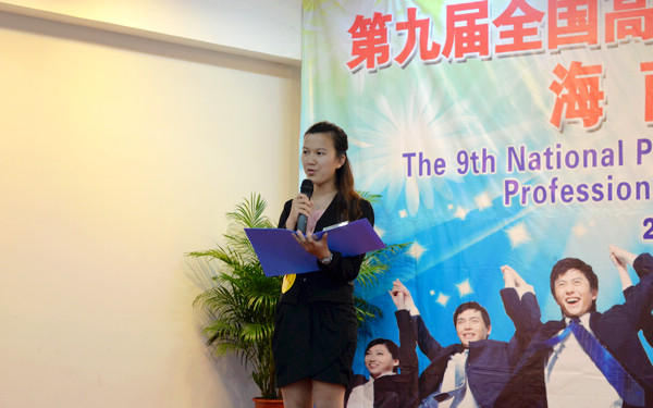 據(jù)悉,2013年海南省高職高專學(xué)生實(shí)用英語口語大賽由海南省教育廳和高等教育出版社主辦,海南省高職高專英語類專業(yè)教學(xué)指導(dǎo)委員會(huì)和我院承辦,旨在進(jìn)一步深化高職高專院校英語課程教學(xué)改革,不斷激發(fā)高職高專學(xué)生學(xué)習(xí)英語的積極性,努力提高高職高專學(xué)生英語口語表達(dá)能力,同時(shí)為我省參加全國高職高專學(xué)生實(shí)用英語口語大賽選拔選手。