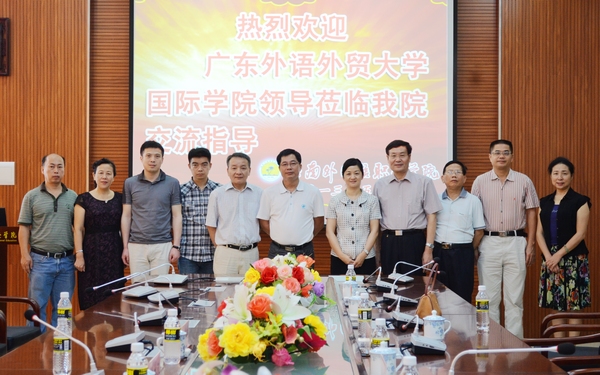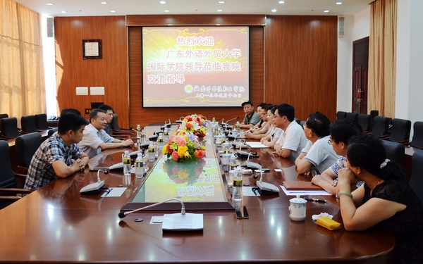 5月17日上午,廣東外語外貿(mào)大學(xué)校長助理、國際學(xué)院院長陳林漢,黨總支書記何洪亮等一行4人蒞臨我院交流指導(dǎo)。我院黨委書記陳禮民,院長李渝鳳,黨委副書記、紀(jì)委書記莫運(yùn)深三位院級(jí)領(lǐng)導(dǎo)、各相關(guān)部門主要負(fù)責(zé)人接待了遠(yuǎn)道而來的客人,并與之進(jìn)行了深入的交流合作,期望通過交流與互助共謀出國留學(xué)項(xiàng)目大發(fā)展。