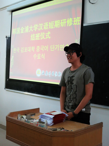 在結(jié)業(yè)儀式上,東語系負(fù)責(zé)人許梅花代表任課教師對此次短期漢語研修班的學(xué)習(xí)情況做了簡要的總結(jié),并鼓勵(lì)學(xué)員們回到韓國后繼續(xù)學(xué)習(xí)漢語,為兩校友誼及中韓兩國文化交流多做貢獻(xiàn)。