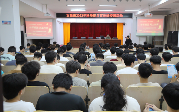 根據(jù)文昌市2023年秋季征兵宣傳進(jìn)校園活動(dòng)安排,5月25日下午,我校在圖書(shū)館多功能報(bào)告廳舉辦2023年征兵宣傳知識(shí)講座。講座特邀文昌市人民武裝部中校副部長(zhǎng)李旺宗,以“參軍報(bào)國(guó),無(wú)上光榮”為講座主題,為我校廣大同學(xué)宣講。學(xué)生工作處處長(zhǎng)主持講座。