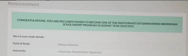 5月23日,印尼駐華大使館教育文化部辦公室(Kantor Atdikbud KBRI)發(fā)來印尼教育文化部留學(xué)生獎學(xué)金錄取結(jié)果,我校東方語言學(xué)院2021級印尼語專業(yè)學(xué)生李鈺靜、黃丹玫接到印尼日惹(Yogyakarta)大學(xué)城的阿赫瑪達蘭大學(xué)(UAD)錄取通知,將在更高的平臺上實現(xiàn)求學(xué)夢想。