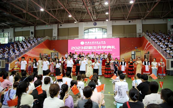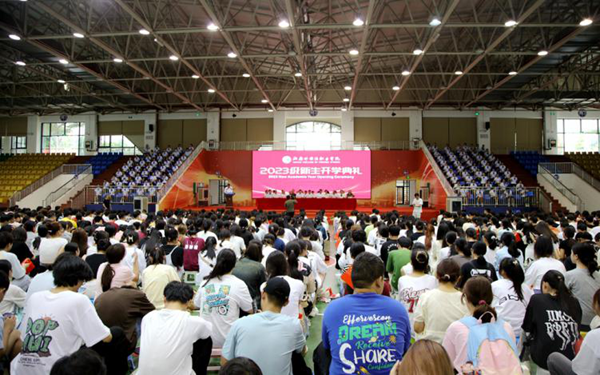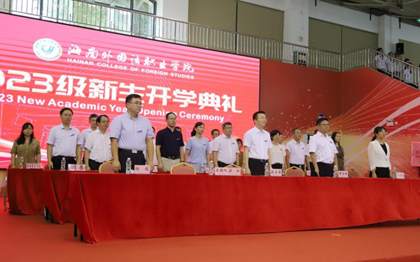 弦歌不輟,芳華待灼,莘莘學(xué)子,共續(xù)華章。9月14日下午,海南外國(guó)語(yǔ)職業(yè)學(xué)院2023年新生開(kāi)學(xué)典禮拉開(kāi)帷幕。秉承著“會(huì)通中外、德能雙馨”校訓(xùn),來(lái)自五湖四海的兩千五百多名新生齊聚一堂,滿載憧憬與希望,以昂揚(yáng)奮斗的青春姿態(tài),共同開(kāi)啟海外院逐夢(mèng)之旅。學(xué)校領(lǐng)導(dǎo)陳正強(qiáng)、黃學(xué)彬、梁松、楊毅、時(shí)秀梅,各部門(mén)主要負(fù)責(zé)人、二級(jí)院(部)黨政主要負(fù)責(zé)人、2023級(jí)新生及其輔導(dǎo)員以及老生代表共同出席開(kāi)學(xué)典禮。