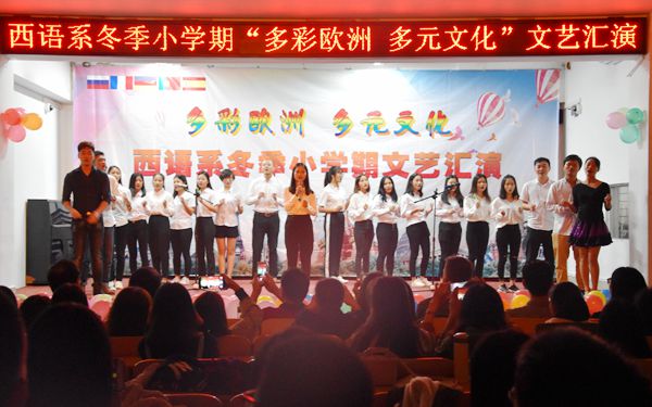 同學們通過PPT演講的方式,輕松的學習了俄語、法語、德語、西班牙語、葡萄牙語的對應語種國家的名俗文化;通過語音語調比賽和知識競賽,在外教的指導與糾正下,提升語言能力,掌握更多更全面的專業(yè)知識,寓教于樂;通過學習民族舞蹈,學唱歌曲,在這種輕松愉悅的氛圍下,邊學邊玩,快速了解了所學語言國家的民族魅力與特色,讓他們學會了自主動手,自我安排,邊學邊練的良好機會,培養(yǎng)了學生們專注的學習態(tài)度,提升學習能力。通過開展“學習經驗交流會”,讓學長學姐們言傳身教,以自己的經歷與教訓為例子,向學弟學妹們傳授實用而快捷的學習方法,有效的提高學習效率。最后,以“文藝匯演”作為此次冬季小學期的結尾,為學生們提供了學以致用、展示自我的舞臺。