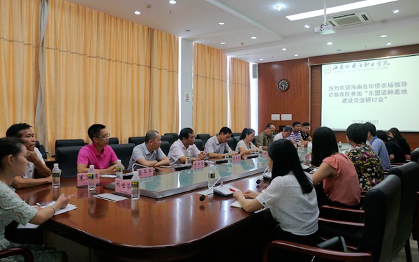 6月8日下午,瓊海彬村山華僑農(nóng)場徐建民副書記、傅王養(yǎng)主任,萬寧興隆華僑農(nóng)場僑聯(lián)曾石花主席、印尼僑友會杜添江會長、新馬泰僑友會符福勝干事、巴黎風(fēng)情村麥友波、郭蕓總經(jīng)理,文昌華僑農(nóng)場黃守吉書記、龔華平副主任,澄邁華僑農(nóng)場朱興健主任、劉世芬干事等海南各大華僑農(nóng)場負(fù)責(zé)人應(yīng)邀蒞臨我院,出席由我院東語系組織舉辦的東盟語種基地建設(shè)交流研討會。