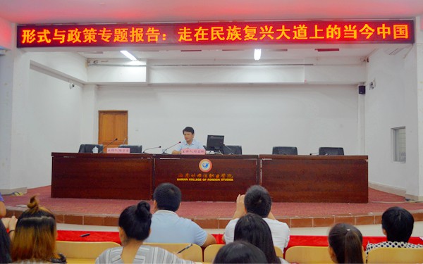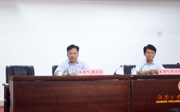 為深入學習貫徹黨的十八屆六中全會精神,使廣大師生員工進一步深化對全面從嚴治黨的必要性和重要性的認識,深化對中華民族偉大復興的中國夢的認識,深化對當前中國和平崛起的戰(zhàn)略機遇與挑戰(zhàn)的認識,11月22日晚,我院特邀海南省社會科學院副院長、海南省社會科學界聯(lián)合會副主席、海南省高校思想政治理論課特聘教授祁亞輝博士來我院,為廣大師生作《走在民族復興大道上的當今中國》專題講座。楊學前副院長主持講座。