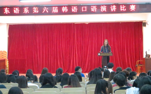 11月29日晚,由我院東語(yǔ)系韓語(yǔ)專業(yè)主辦的第六屆韓語(yǔ)演講比賽在圖書(shū)館多功能報(bào)告廳舉行。此次比賽由韓語(yǔ)教研室主任郭海燕老師、李振中老師、符向鋒老師、金焱老師、姚然老師,韓語(yǔ)外教鄭賢宇老師等擔(dān)任評(píng)委。經(jīng)過(guò)前期選拔,有12名優(yōu)秀選手進(jìn)入決賽。
