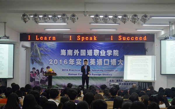 12月10日晚,由教務(wù)處、團委、應(yīng)用英語系聯(lián)合主辦的我院2016年實用英語口語大賽在多功能報告廳舉行,經(jīng)過各系部層層選拔推選出來的25名學(xué)生同臺競技、展露風(fēng)采,為爭奪代表我院參加2016年海南省高職高專學(xué)生實用英語口語大賽名額展開角逐。