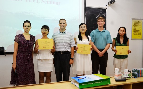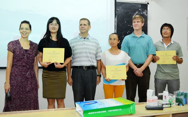 7月23日下午,我院與美國國際教育交流協(xié)會聯(lián)合舉辦的2013年暑期英語教師培訓(xùn)班結(jié)業(yè)典禮在多媒體教室(4)舉行。美國國際教育交流協(xié)會教師為全體學(xué)員頒發(fā)了結(jié)業(yè)證書。至此,為期15天的培訓(xùn)落下了帷幕。