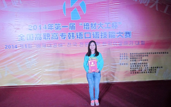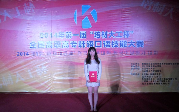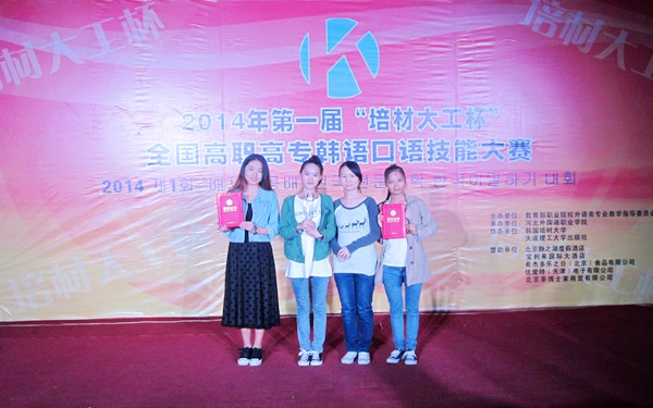 為了深化高職高專韓語(yǔ)教學(xué)改革,進(jìn)一步關(guān)注學(xué)生韓語(yǔ)應(yīng)用能力的整體提高,教育部職業(yè)院校外語(yǔ)類專業(yè)教學(xué)指導(dǎo)委員會(huì)于9月20日至21日舉辦了第一屆“培材大工杯”全國(guó)高職高專韓語(yǔ)口語(yǔ)技能大賽。來(lái)自全國(guó)三十余所高職高專院校的百余名學(xué)子參加了本次大賽,以韓語(yǔ)同場(chǎng)競(jìng)技。我院2012級(jí)應(yīng)用韓語(yǔ)專業(yè)的6名同學(xué)參加比賽,憑借優(yōu)異的語(yǔ)言基礎(chǔ)和良好的現(xiàn)場(chǎng)表現(xiàn),最終獲得1個(gè)單項(xiàng)二等獎(jiǎng)、1個(gè)團(tuán)體二等獎(jiǎng)和1個(gè)單項(xiàng)三等獎(jiǎng)的好成績(jī),其中陳皓璇、劉香艷同學(xué)分別獲得個(gè)人演講比賽的二等獎(jiǎng)、三等獎(jiǎng),同時(shí)陳皓璇同學(xué)還獲得前往韓國(guó)培材大學(xué)語(yǔ)言研修十周且免除學(xué)費(fèi)的優(yōu)厚獎(jiǎng)勵(lì),吳杉杉、謝玉梅、吳思華及陳良宇同學(xué)獲得團(tuán)體技能賽的二等獎(jiǎng)。