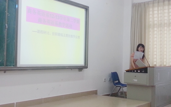 2013年3月25日下午,我系在BE102展開本學期初的教學研討活動,主題為課程設(shè)計與掛職報告。會議分為兩部分,第一部分為課程設(shè)計與掛職報告,第二部分為教學總結(jié)